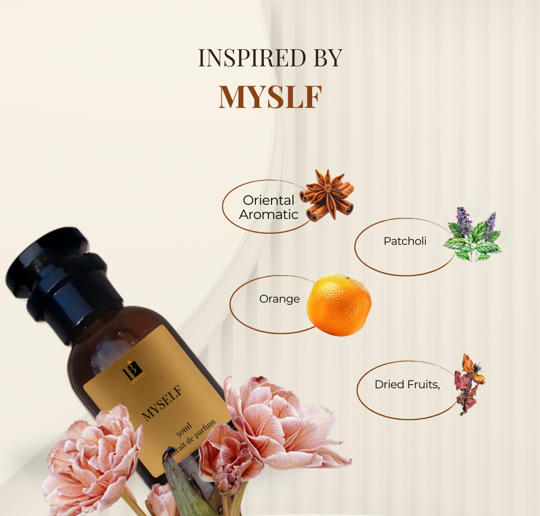 Myself is a smooth and modern Aromatic extrait de parfum created for men who like their fragrance clean, confident, and effortlessly refined. It opens with a fresh burst of bright citrus that immediately feels uplifting and crisp. At the heart, soft orange blossom adds a subtle floral warmth that keeps the scent balanced and elegant. As it settles, rich patchouli and warm ambrofix create a deep, masculine base that lingers all day.